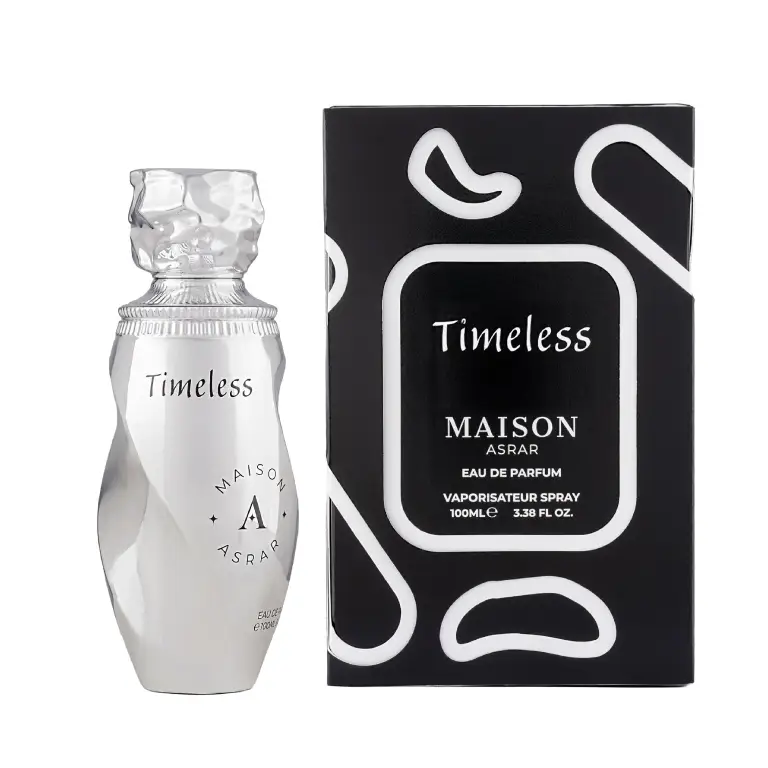 MAISON ASRAR Timeless est une ode à l’élégance masculine intemporelle. Ce nouveau parfum homme original offre un mélange raffiné d’élémi, d’agrumes, de romarin, de notes fruitées, sur un fond profond et sophistiqué d’ambre gris et de patchouli. Avec sa performance solide et son caractère aromatique, boisé, frais, épicé frais, terreux et subtilement balsamique, c’est un choix exceptionnel pour l’homme moderne au Maroc qui recherche une signature olfactive élégante et durable. Découvrez Timeless authentique dès maintenant chez Parfum Lux.